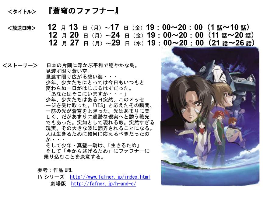 今週から劇場版ファフナー公開に合わせてテレビ版蒼穹のファフナーが